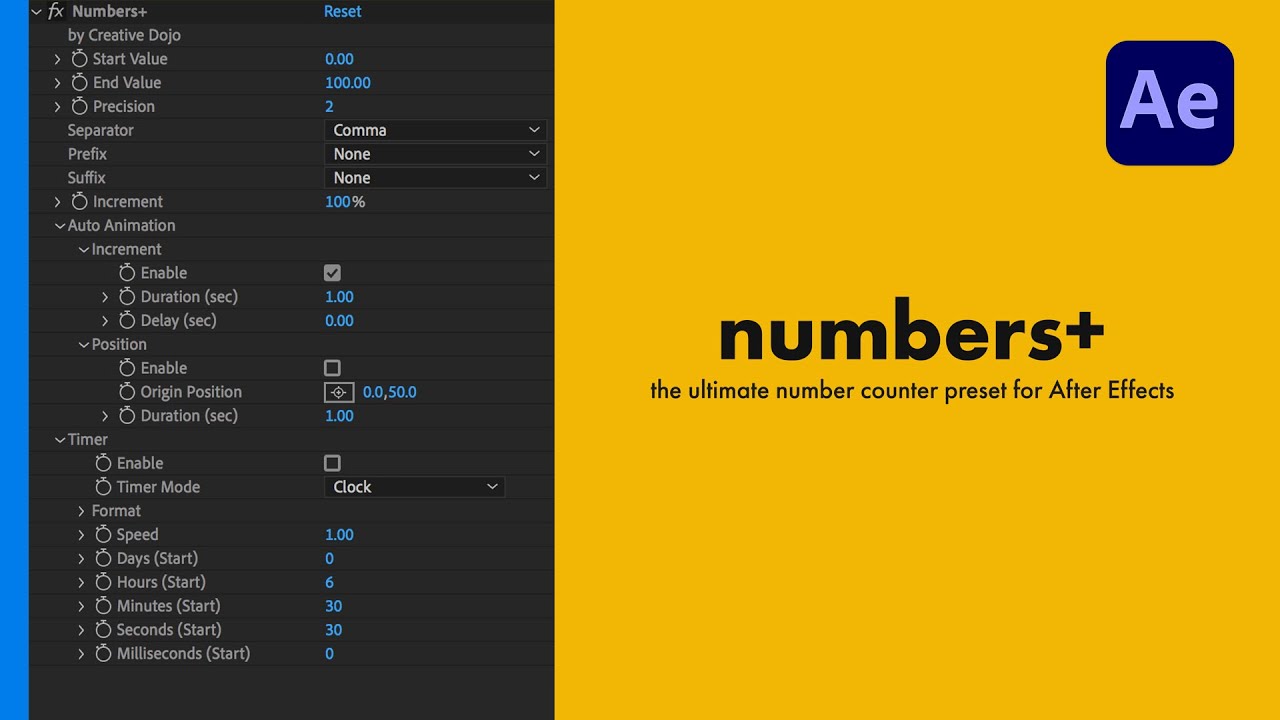 Numbers+ เป็น Preset Plug-ins สำหรับการนับตัวเลข รันตัวเลขจนถึงเลข